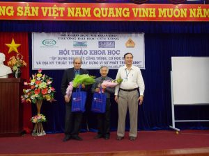 TS. Nguyễn Thanh Dũng – Phó Hiệu trưởng tặng quà cho các báo cáo viên tại hội thảo“Áp dụng Địa chất công trình, Cơ học đất và Địa kỹ thuật trong xây dựng vì sự phát triển xanh” |