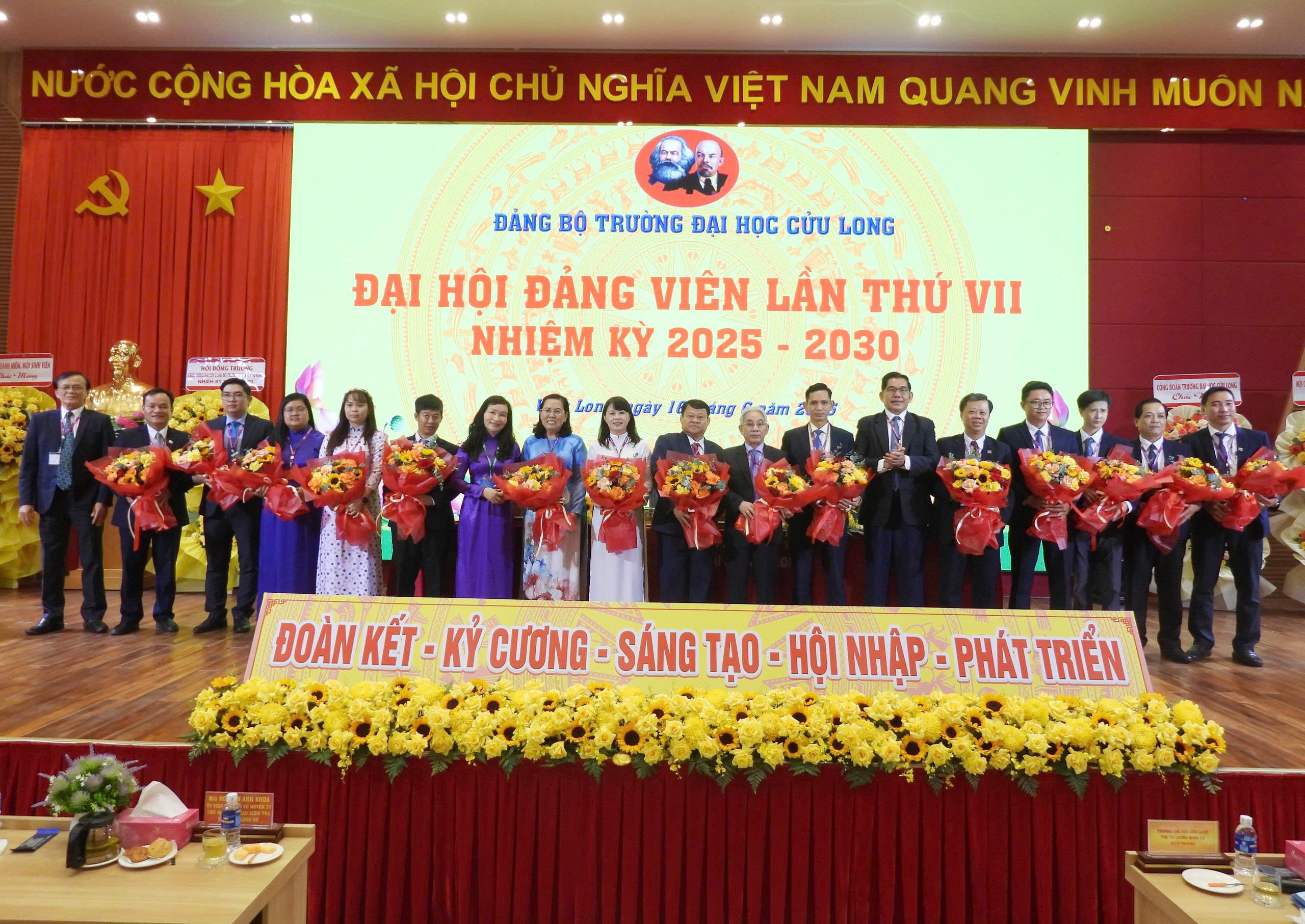 – Ngày 16/6/2025, Đại hội lần thứ VII (nhiệm kỳ 2025-2030) được tiến hành với sự tham dự của 145 đảng viên. Đồng chí Lương Minh Cừ, Hiệu trưởng tái đắc cử chức vụ Bí thư Đảng ủy Trường Đại học Cửu Long.